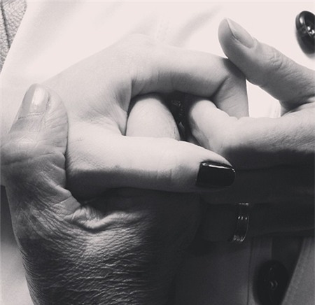 Bàn tay của Caroline nắm chặt tay bà và tay mẹ. |