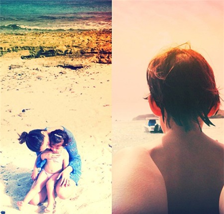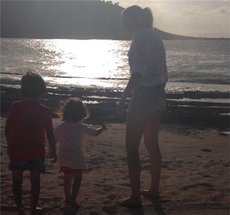 Kaka chụp lại ảnh 3 mẹ con chơi đùa trên bờ biển. |