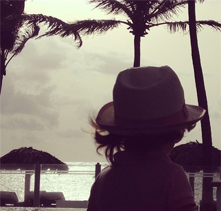 Cô con gái đáng yêu nhà Kaka đang ngắm nhìn biển khi hoàng hôn xuống. |