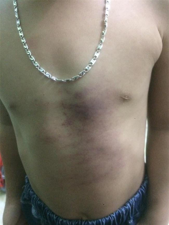 "Khi đón cháu về, ông nội phát hiện sự việc lạ đã hỏi cô giáo thì được cô cho biết là cháu bị thương như vậy là do bị các bạn trong lớp đánh vào lúc trưa." anh Nhất kể.