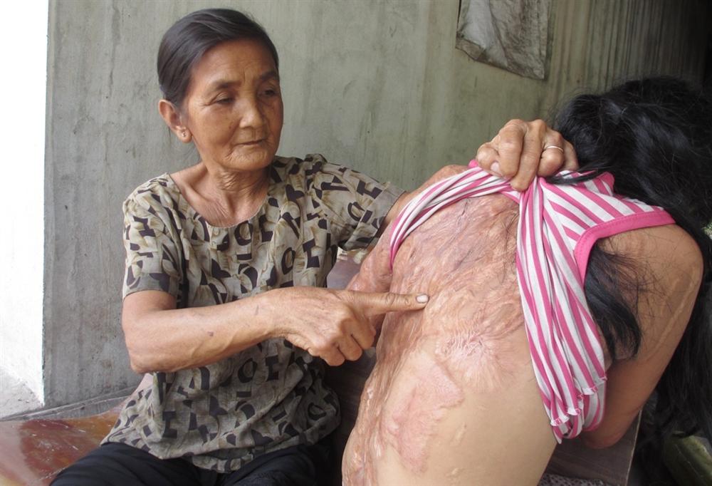Vụ tạt axít ghen tuông kinh hoàng đã khiến toàn thân bé N. bị biến dạng. Ảnh: Thanh Lâm.
