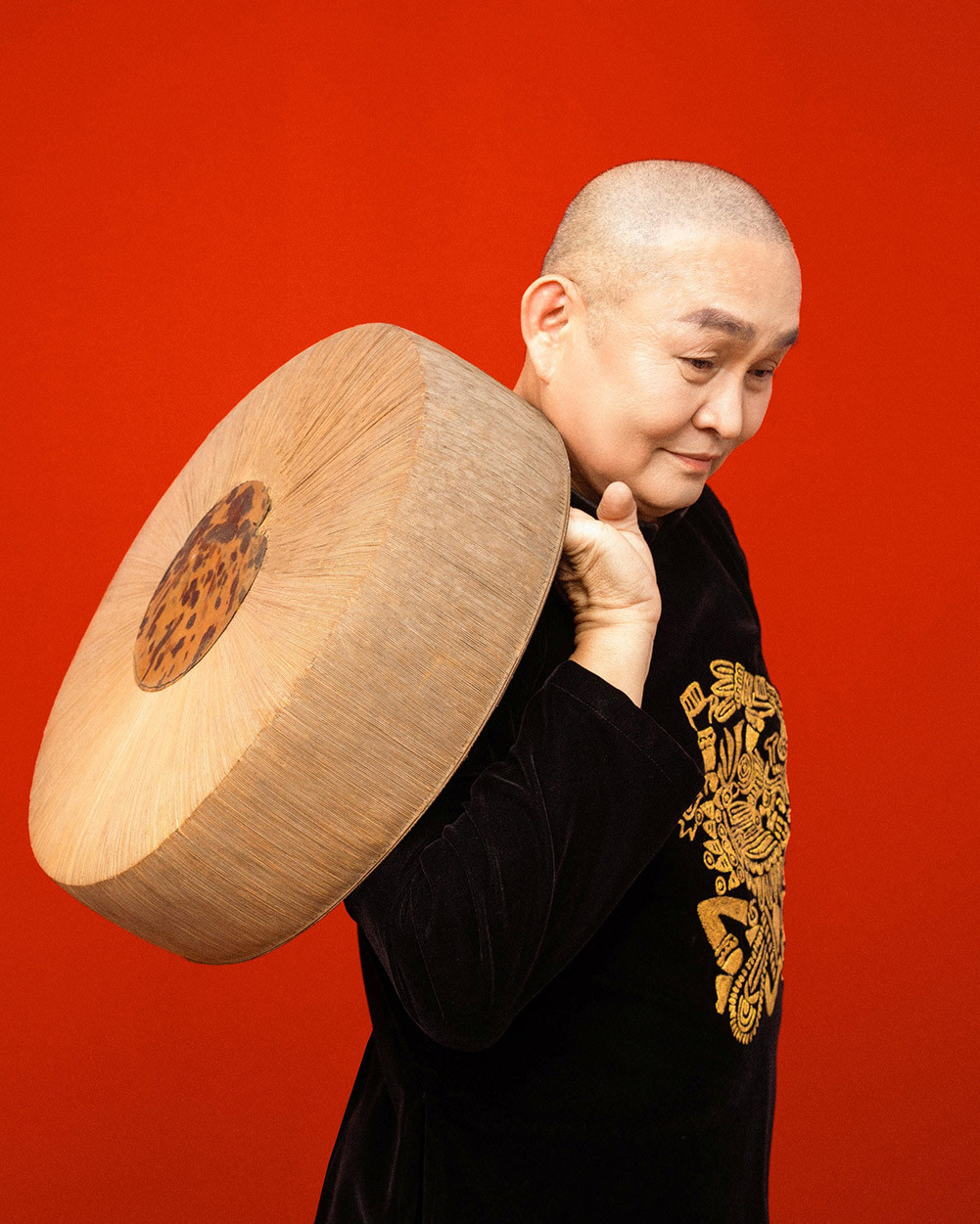 Nam nghệ sĩ chụp hình cùng nón quai thao.