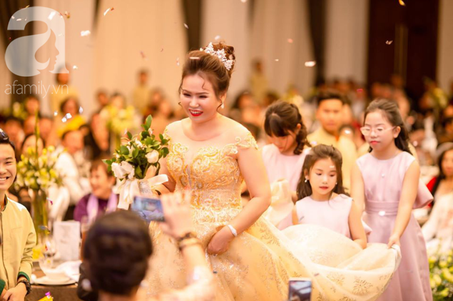 Cô dâu đặc biệt không phải cha cầm tay dẫn vào lễ đường mà là các cháu nội, cháu ngoại