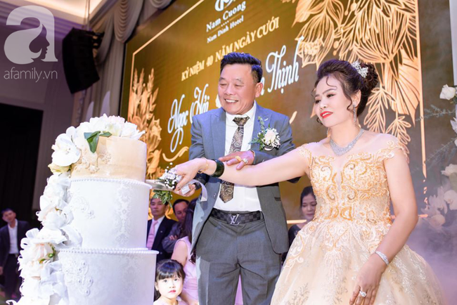 Chú rể Ngọc Hải và cô dâu Phạm Thịnh vừa tổ chức lễ kỉ niệm 40 năm ngày cưới - đám cưới Hồng Ngọc tại một khách sạn lớn ở Nam Định. Mặc dù đã có 4 thập kỉ bên nhau nhưng cặp đôi này vẫn quyết định "chơi lớn". Tổng chi phí cho lễ kỉ niệm này là con số không hề nhỏ. Nhưng tất cả đều không bằng niềm vui, niềm hạnh phúc mà cặp đôi đã có.