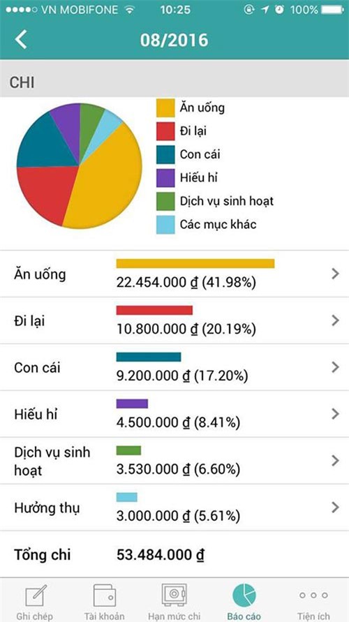 Chi tiết khoản các khoản chi của Đình Nam Cafe: 2.080.000đ Ăn tiệm: 12.106.000đ Đi chợ/siêu thị: 8.268.000đ Rửa xe: 750.000đ Gửi xe (gửi xe ngoài và gửi xe công ty): 1.800.000đ Bảo hiểm xe: 1.400.000đ Mua bảo hiểm: 2.000.000đ Xăng xe: 6.850.000đ Internet: 250.000đ Điện: 1.150.000đ Hiếu hỉ: 4.500.000đ Vui chơi giải trí: 3.000.000đ Tiền tiêu vặt: 1.800.000đ Sữa: 2.200.000đ Học phí cho con: 3.200.000đ Cáp truyền hình: 150.000đ Gas: 180.000đ Tiền điện thoại di động: 1.800.000đ ->> Tổng 53.484.000đ |