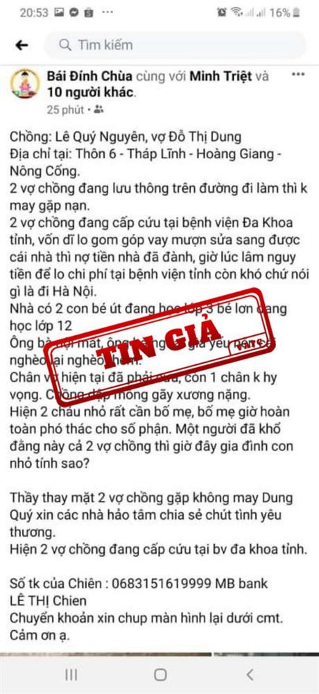 Người đăng tin đề nghị gửi tiền từ thiện vào tài khoản 0683151619999 ngân hàng MB bank, chủ tài khoản Lê Thị Chiên.