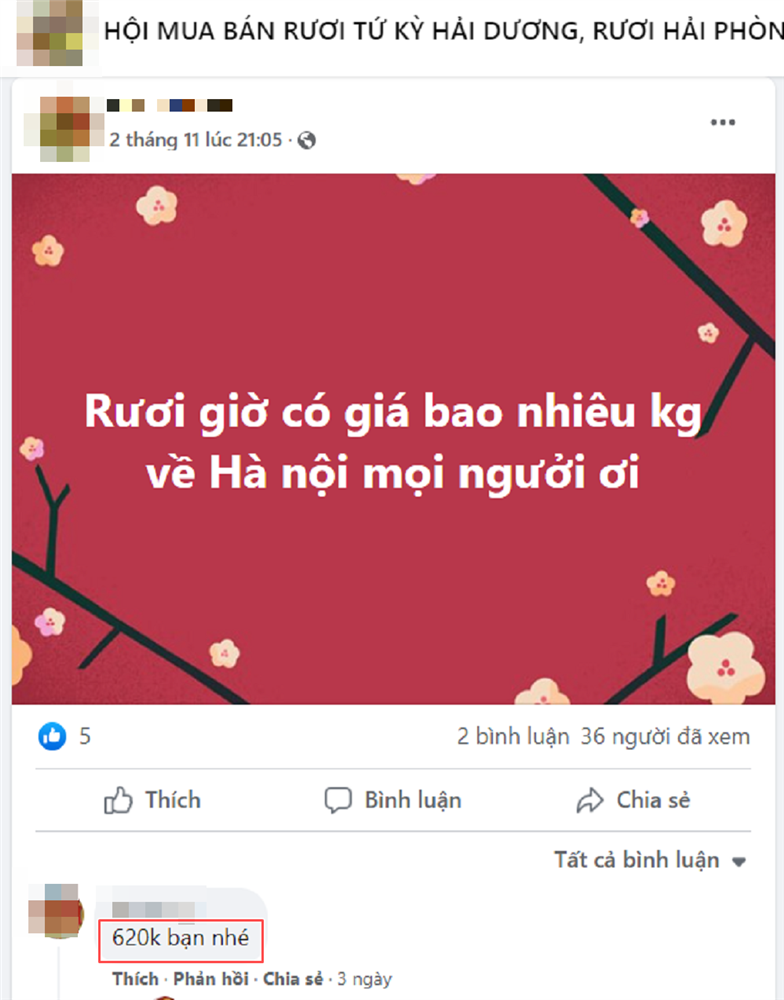 Lý do giá rươi năm nay lại cao như vậy là do thời tiết không thuận lợi, khiến việc thu hoạch bị giảm sút. Mặt hàng rươi tươi khan hiếm khiến giá thành bị đẩy lên cao ở một số nơi. Trên một group chuyên bán rươi tươi, một tiểu thương bán hàng online thông báo, giá rươi hiện tại là 620.000 đồng/kg không khỏi khiến nhiều người bất ngờ.