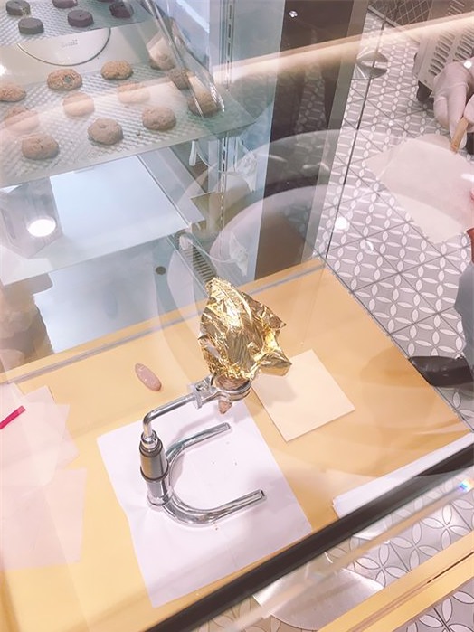 Thích nhất là đến đây còn được tận mắt nhìn công đoạn đắp vàng lên nữa! Thêm một điểm cộng đó là 2 anh nhân viên người Pháp ở đây cực kì nhiệt tình và thân thiện." Khỏi cần phải nói thì chắc hẳn ai cũng hiểu sắp tới sẽ có vô số người ùn ùn kéo đến để thử loại kem sang chảnh này rồi nhỉ!