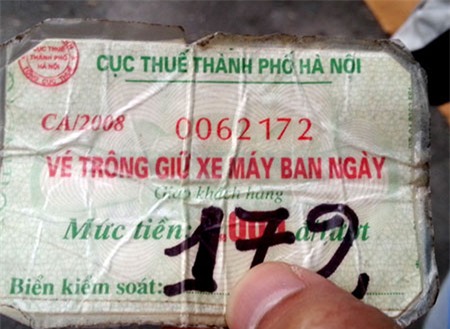 có tấm biển ghi giá trông giữ xe trên cuống vé và tấm biển nhưng nhiều