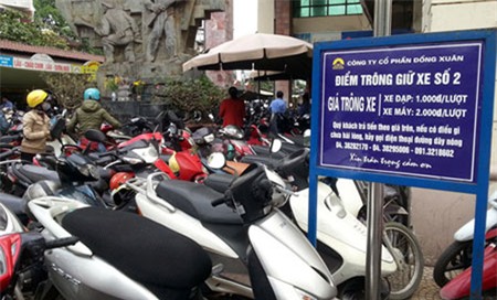Tại chợ Đồng Xuân, bãi xe này được cấp phép và do Công ty cổ phần Đồng Xuân làm quản lý, phía ngoài luôn để biển hiệu, số điện thoại đường dây nóng và ghi rõ số tiền vé thu xe máy, xe đạp theo giá quy định của nhà nước, tuy nhiên theo ghi nhận, hầu hết các nhân viên đều thu với giá 10.000 đồng/một xe máy.