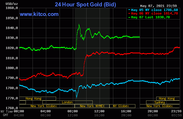 Trên thị trường vàng thế giới, giá vàng giao ngay chốt phiên đêm qua tại Mỹ tăng 16 USD lên 1.830,7 USD/ounce. Giá vàng tương lai giao tháng 6 trên sàn Comex New York tăng 16,3 USD lên 1.832 USD/ounce.