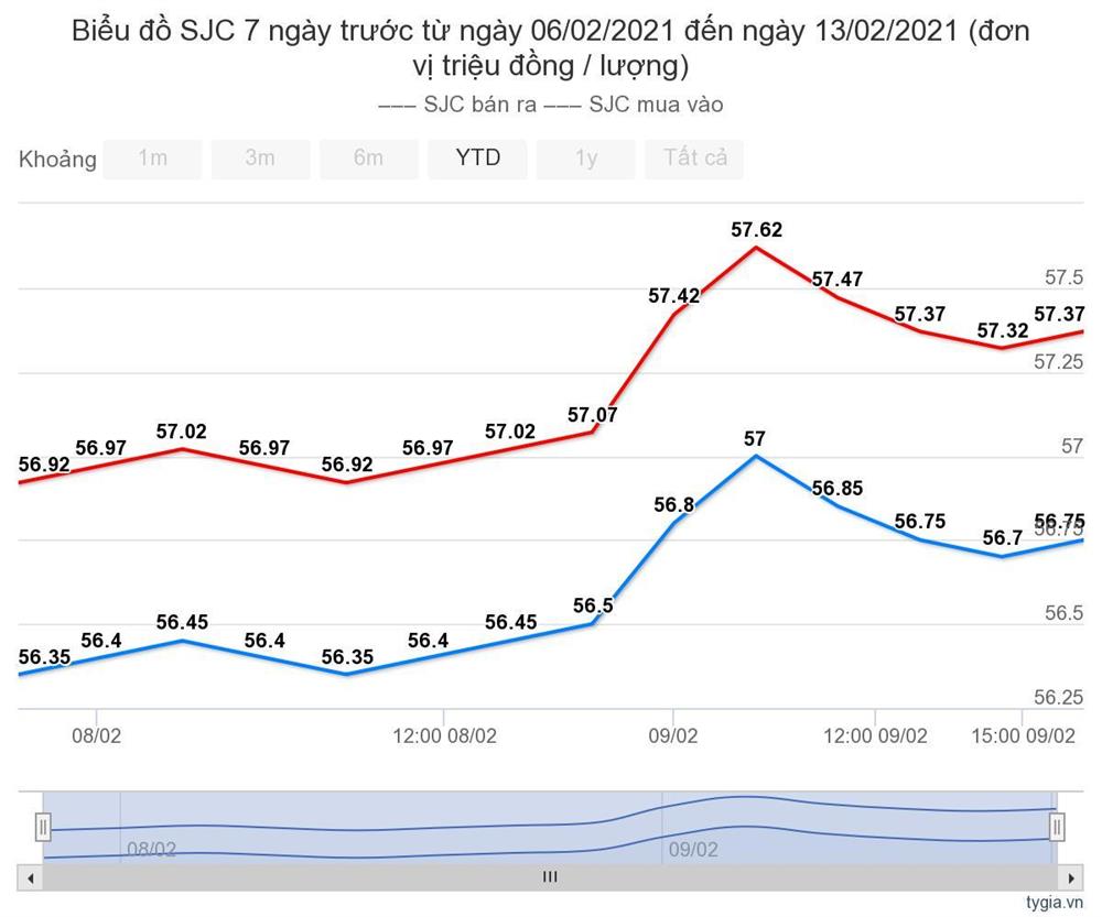 Vào kỳ cuối cùng trước khi nghỉ Tết nguyên đán, thị trường vàng trong nước không có nhiều biến động về giá. Các phiên giao dịch tiếp theo, giá vàng quanh mức 57 triệu đồng/lượng.