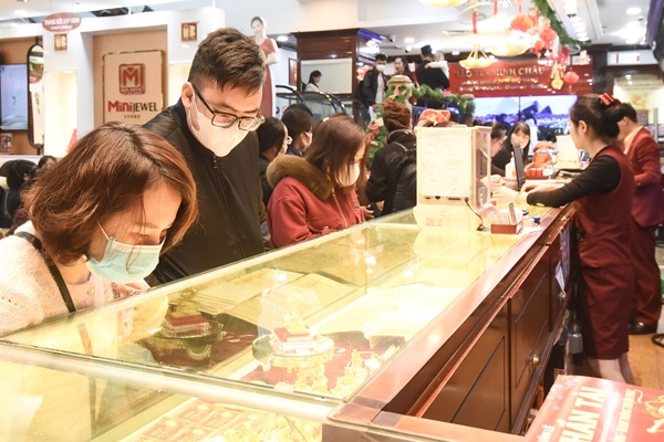 Người dân mua vàng trước này vía Thần Tài. (Ảnh: Tâm An)