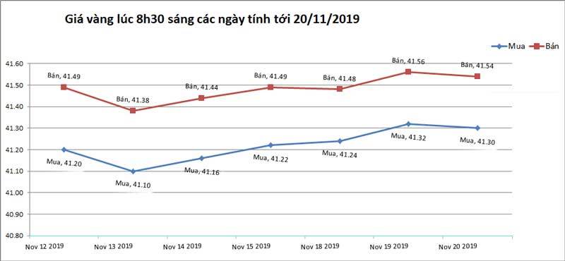 Tính tới cuối phiên giao dịch 20/11, Tập Đoàn Vàng bạc đá quý DOJI niêm yết giá vàng SJC ở mức: 41,41 triệu đồng/lượng (mua vào) và 41,61 triệu đồng/lượng (bán ra). Công ty vàng bạc đá quý Sài Gòn niêm yết vàng SJC ở mức: 41,42 triệu đồng/lượng (mua vào) và 41,66 triệu đồng/lượng (bán ra).