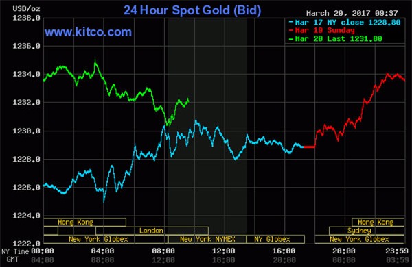 Tới đầu giờ sáng 21/3 (giờ Việt Nam), giá vàng thế giới giao ngay đứng ở mức 1.231,9 USD/ounce.