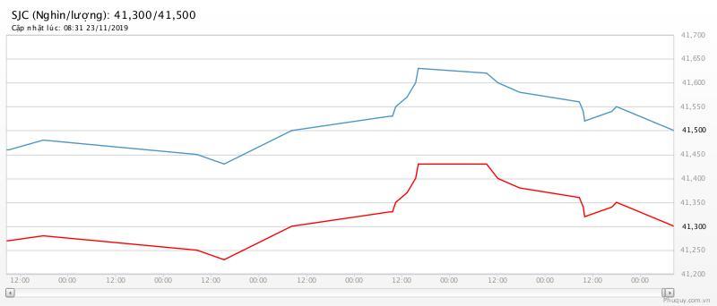 Công ty vàng bạc đá quý Sài Gòn niêm yết giá vàng SJC ở mức 41,28 triệu đồng/lượng (mua vào) và 41,54 triệu đồng/lượng (bán ra) tại Hà Nội. Gia vàng miêng SJC tại TP.HCM niêm yết ở mức 41,52 triệu đồng/lượng.