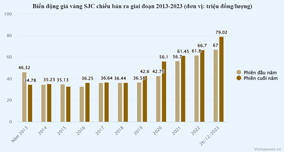 Với những người mua vàng từ năm 2013 đến 2021 và nắm giữ đến nay, giờ đem bán có thể lãi khoảng 10-44,75 triệu đồng/lượng.