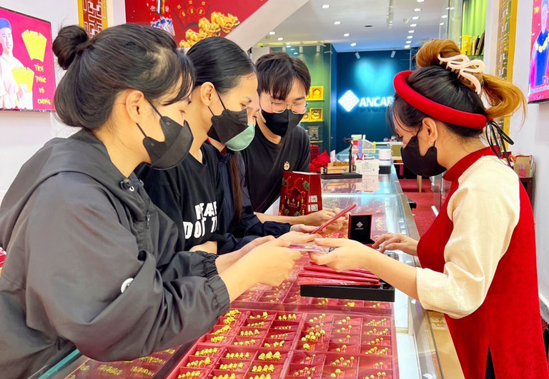 Ghi nhận tại các cửa hàng vàng vào sáng 22/12, lượng khách hàng đến giao dịch vẫn rất sôi động.