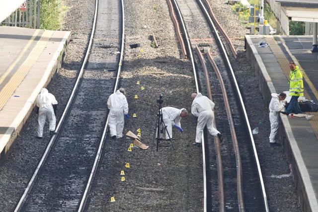 Cảnh sát có mặt tại nhà ga, nơi hai mẹ con qua đời vì tai nạn xe lửa.