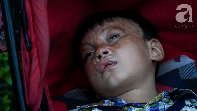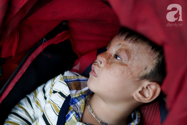 Người phụ nữ trẻ nhỏ nhẹ gửi trả lại tiền cho khách, lễ phép đưa bằng 2 tay. Gương mặt cô đầy sẹo rỗ, chân mộc không chút son phấn, áo quần cũng giản đơn. Có lẽ đó là mẹ của bé trai nằm trong nôi, vì cứ chốc lát cô ấy lại quay sang nhìn con, kéo lại chăn gối lót dưới nôi cho bé nằm thoải mái. Cậu bé nằm im không cựa quậy, nhịp thở đều đều giống như đang ngủ, chỉ có điều thật lạ là đôi mắt bé cứ mở trừng trừng. Ngay trên thành nôi, còn có 1 chiếc giỏ nhựa đựng đầy bút, giấy lau tay, kẹo cao su... khiến cậu bé phải co chân để nằm.