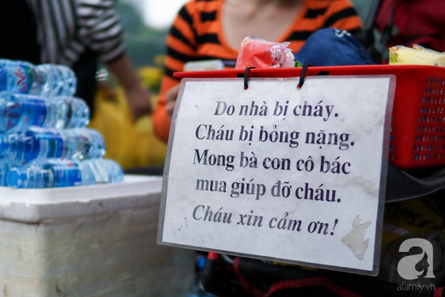 Không khó để biết được lý do 2 mẹ con họ ngồi bán hàng mưu sinh trên lề phố: "Con trai em đấy, mới 4 tuổi thôi. Mẹ con em chỉ có mỗi cái thùng xốp này đựng ít đồ lặt vặt, chai nước, gói kẹo... cho ai cần thì vào mua. Biết là chẳng được bao nhiêu, nhưng dù phải ngồi đây bao lâu nữa em cũng ngồi, để gom tiền đi phẫu thuật bỏng cho con. Cháu bị như này, cũng là do em bất cẩn...".
