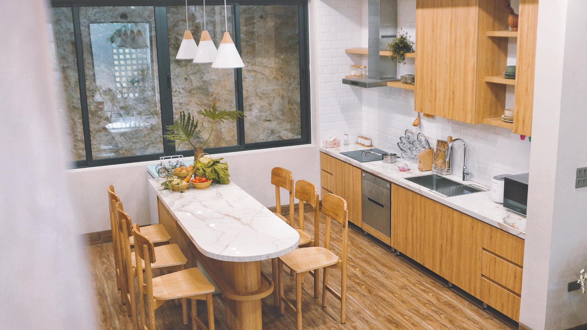 Nhà bếp đơn giản, gọn gàng là khu vực yêu thích và tâm đắc của nữ chủ nhà