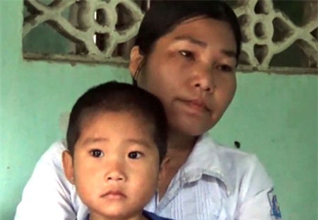 Chị Hoàng Thị Mỹ rơi vào tình cảnh mẹ góa, con côi khi chồng bỏ mạng tại Angola. |