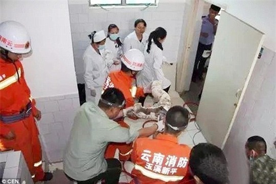 Vụ việc xảy ra hôm 20-3 tại TP Ngọc Khê, tỉnh Vân Nam – Trung Quốc. Lính cứu hỏa đã mất 3 giờ để có thể giải cứu bé gái mới sinh kẹt trong bồn cầu nhà vệ sinh nữ ở bệnh viện Xinping.