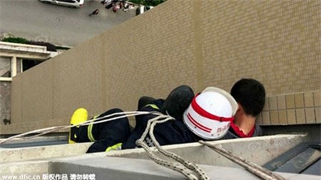 Trưa 10/5, ở thành phố Vu Hồ, tỉnh An Huy, cơ quan cứu hộ nhận được tin báo cần giải cứu một cậu bé đứng ngoài cửa sổ một căn hộ chung cư ở tầng 10.