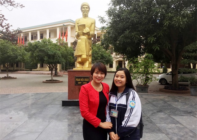Hà Trang và cô giáo chủ nhiệm Bùi Thị Bích Hậu.