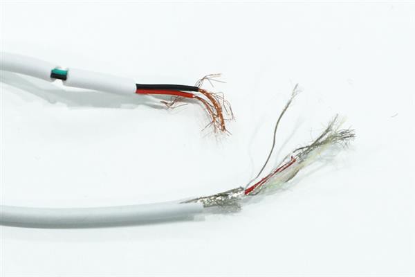 Các sợi dây điện bên trong cáp chính hãng của Apple được bọc một lớp lưới dệt bằng kin loại và lá thiếc. Chúng không chỉ cải thiện độ dẻo dai tổng thể của cả dây mà còn có thể bảo vệ dây khỏi sự can thiệp từ bên ngoài khỏi các va chạm vật lý, hay sự tò mò táy máy muốn tự sửa chữa ghép nối của người dùng.