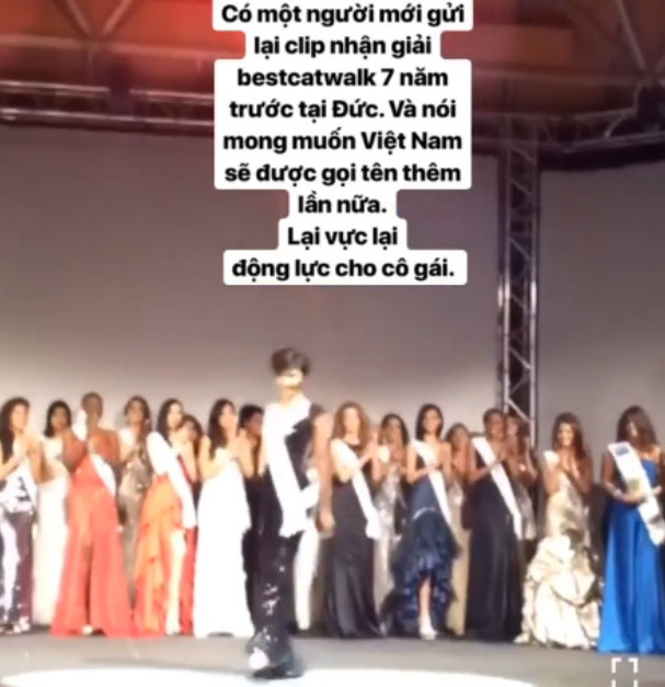 "Có một người mới gửi lại clip nhận giải Best Catwalk 7 năm trước tại Đức, và nói mong muốn Việt Nam sẽ được gọi tên thêm lần nữa. Lại vực lại động lực cho cô gái!", Hoàng Thùy tâm sự.