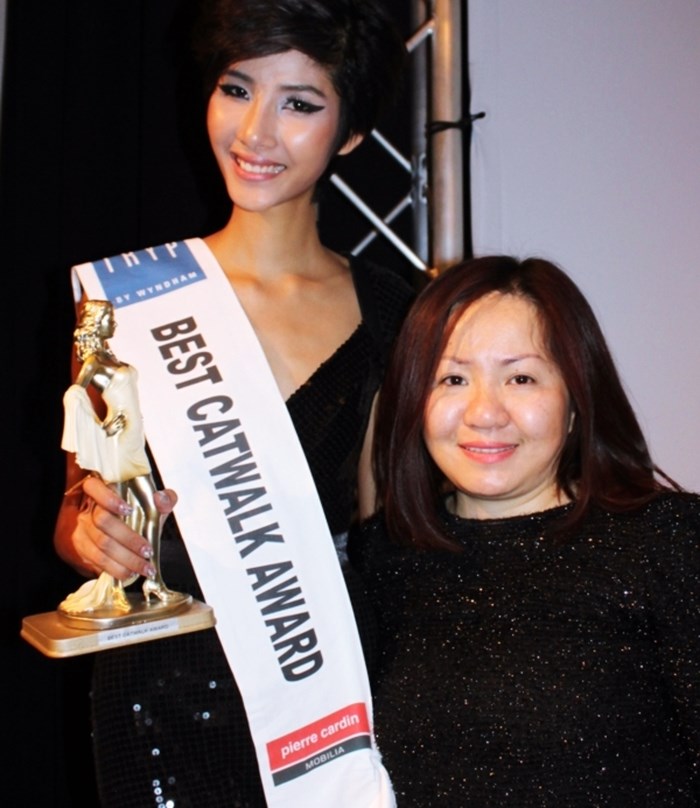 Khoảnh khắc chân dài xứ Thanh nhận giải "Best Catwalk" tại cuộc thi Siêu mẫu Thế giới 2012.