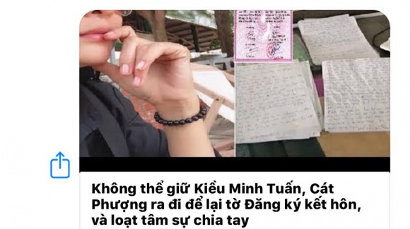 Tuy nhiên, mới đây vẫn có kẻ tung tin đồn rằng vì không giữ được Kiều Minh Tuấn nên Cát Phượng đã để lại tờ đăng ký kết hôn cùng loạt tâm sự chia tay.