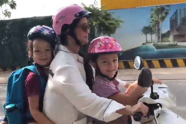 Đi kèm những dòng tâm sự này, nữ ca sĩ đăng ảnh cô chở 2 bé Tôm - Tép đi đến trường bằng xe gắn máy với tâm trạng vui vẻ và tràn đầy sức sống.