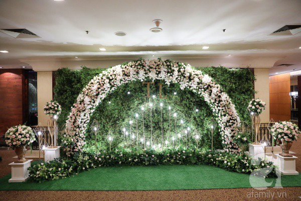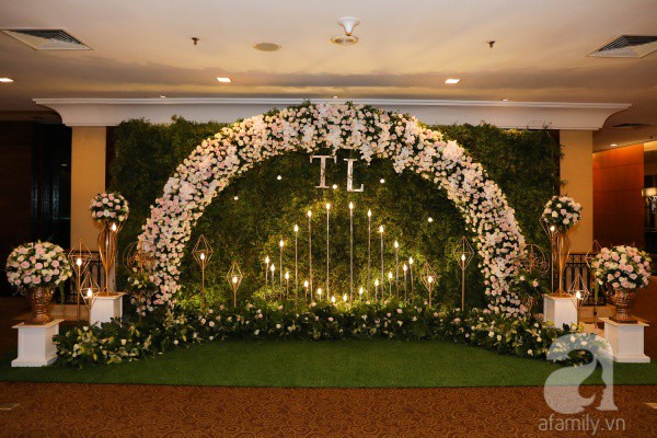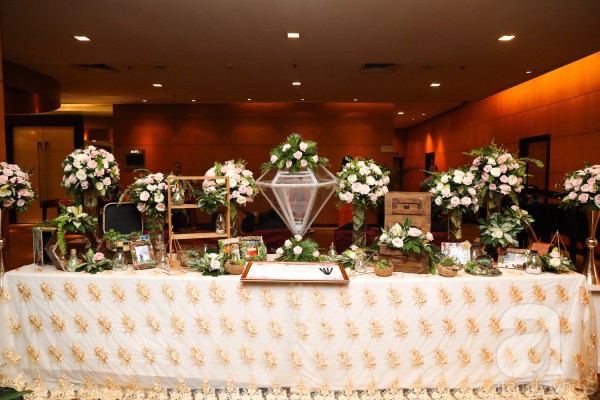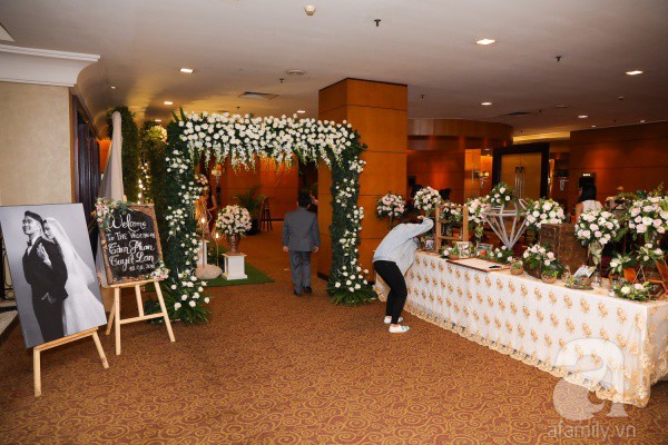 Được biết, hôn lễ được tổ chức tại một khách sạn vô cùng sang trọng ở trung tâm thành phố. Không gian tiệc cưới được trang hoàng bởi rất nhiều hoa tươi và rực rỡ sắc màu.