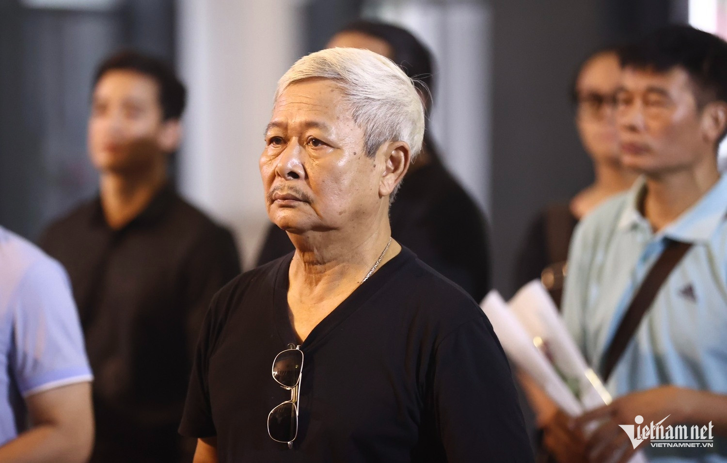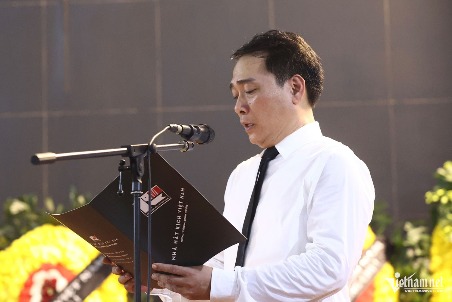 NSND Xuân Bắc, NSƯT Kiều Minh Hiếu và các diễn viên Nhà hát Kịch Việt Nam thắp hương tiễn biệt đồng nghiệp về nơi an nghỉ cuối cùng.