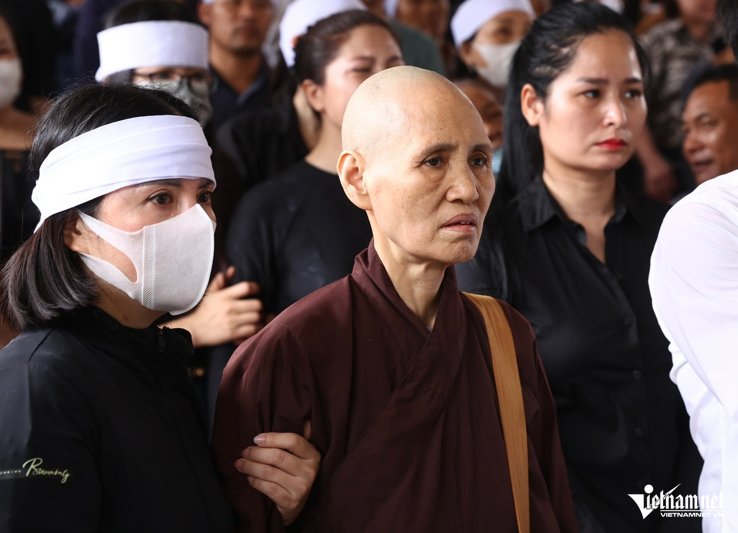 Mẹ ruột NSƯT Bùi Phương Nga (áo nâu) đã xuất gia nhiều năm nay cũng về tiễn biệt con gái lần cuối.