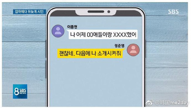 Đoạn tin nhắn đã phơi bày những nội dung trao đổi vô cùng dơ bẩn và bệnh hoạn. Lee Jong Hyun được đánh giá là trùm sò không thua kém gì Jung Joon Young về độ bệnh hoạn. Nam ca sĩ thường xuyên quay clip và chia sẻ vào đoạn group chat.