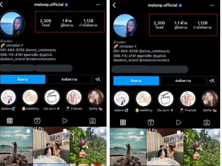 Bên cạnh đó, mạng xã hội Twitter cũng đang xôn xao trước một thông tin liên quan tới tài khoản Instagram của nữ diễn viên. Theo đó, tài khoản Instagram của Tangmo Nida đã bị xóa mất 6 bài đăng, từ 2.306 bài đăng trước đó xuống còn 2.300 bài.