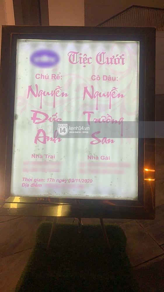 Bắt đầu từ chiều tối ngày 30/11, đám cưới Tường San và chú rể giấu mặt chính thức được diễn ra tại một địa điểm sang trọng ở Hà Nội. Tính đến 17 giờ 30 phút chiều, rất nhiều khách mời là người thân và bạn bè của cô dâu, chú rể đã có mặt. Tuy nhiên, vì muốn giữ tính riêng tư nên hôn lễ của Tường San được bảo mật ở mức rất cao, không có sự tác nghiệp của truyền thông.