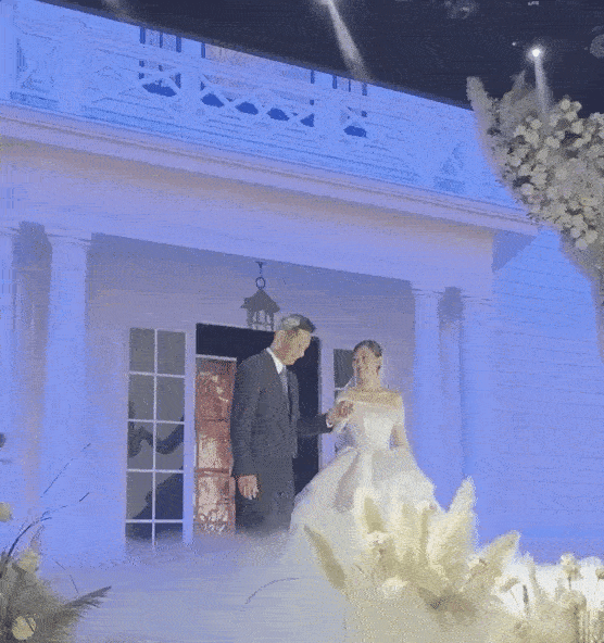 Tường San được cha dẫn lên lễ đường trong ngày cưới