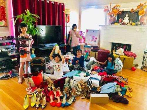 "Hay tin chị Cát bay về Việt Nam, bạn bè chiến hữu thân thiết của chị qua nhà đòi phụ sắp xếp hành lý giúp chị... Rồi giúp đâu không thấy, chỉ thấy tụi nó xúm vô quậy banh nguyên cái nhà" - Thúy Nga hài hước chia sẻ.