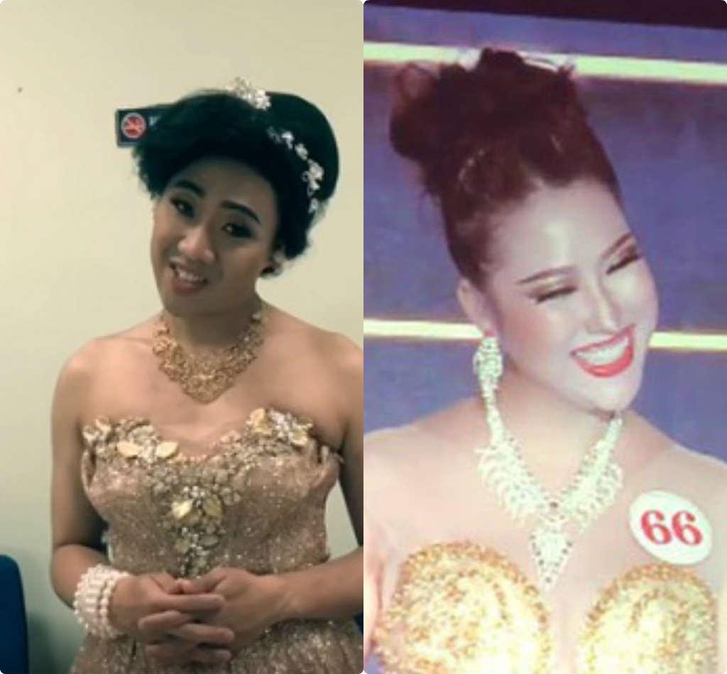 Anh cũng từng gây sốt khi nhái lại màn ứng xử hoa hậu được cho là "thảm họa" của Phi Thanh Vân.