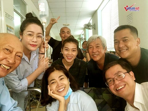 Mai Phương cùng nhiều nghệ sĩ khác thăm diễn viên Lê Bình tại bệnh viện.