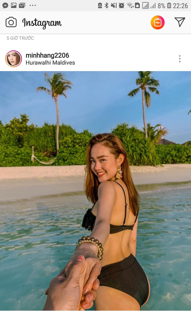 Hiện tại, Minh Hằng đang có chuyến du lịch nghỉ dưỡng tại Maldives. Việc công khai đi chơi với bạn trai được xem là động thái công khai đầu tiên của nữ ca sĩ sau nhiều năm giấu kín.