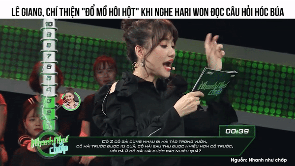 Với giọng nói "ngọng líu lo và chậm như rùa", Hari Won khiến người chơi "toát mồ hôi hột" khi nghe cô đọc câu hỏi đáng lẽ phải thật nhanh.