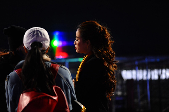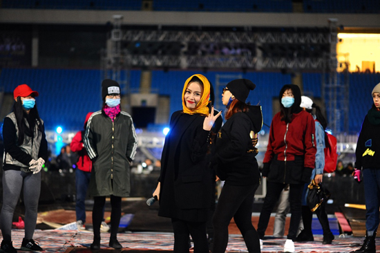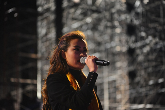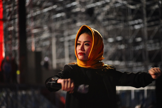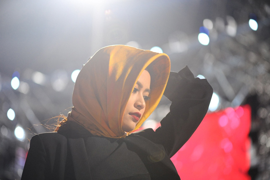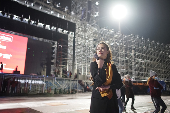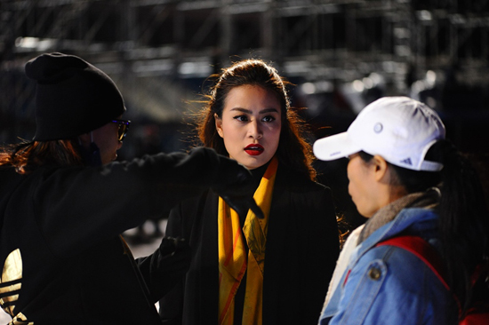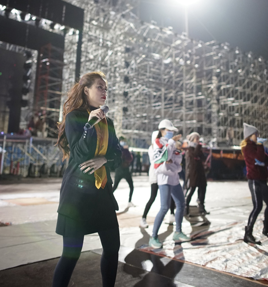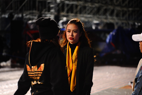 Phần tổng duyệt vào đêm muộn, trời lạnh khiến nữ ca sĩ Hoàng Thuỳ Linh phải