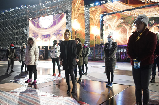 Các vũ công biển diễn chung với Hoàng Thuỳ Linh ai cũng co ro vì lạnh.