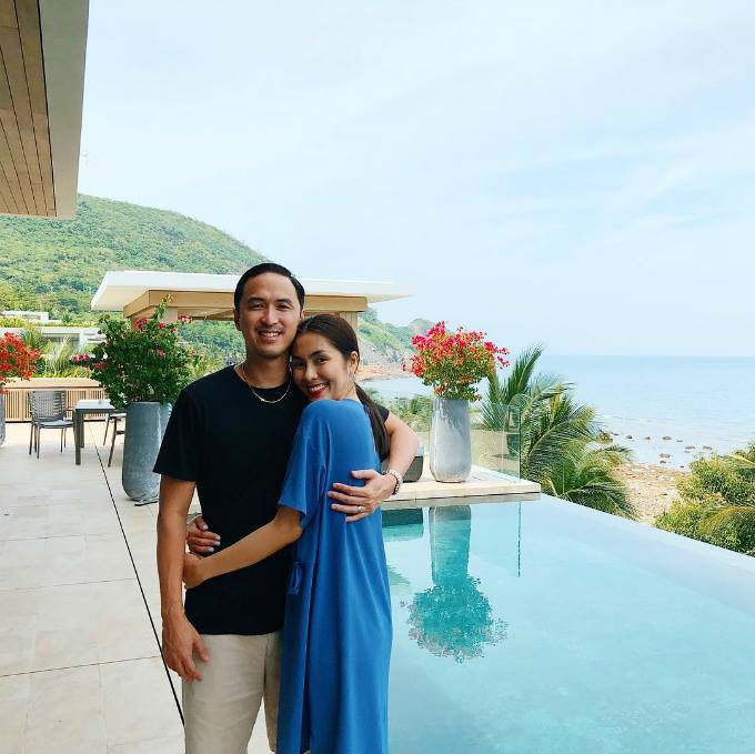 Trong ảnh, hai vợ chồng Louis Nguyễn và Tăng Thanh Hà ăn mặc giản dị. Ngọc nữ màn ảnh Việt mặc chiếc đầm xanh quang tay ôm ngang người ông xã và nép vào vòng tay của Louis Nguyễn. Cả hai nhìn thẳng vào ống kính và nở nụ cười bình an, ngọt ngào.